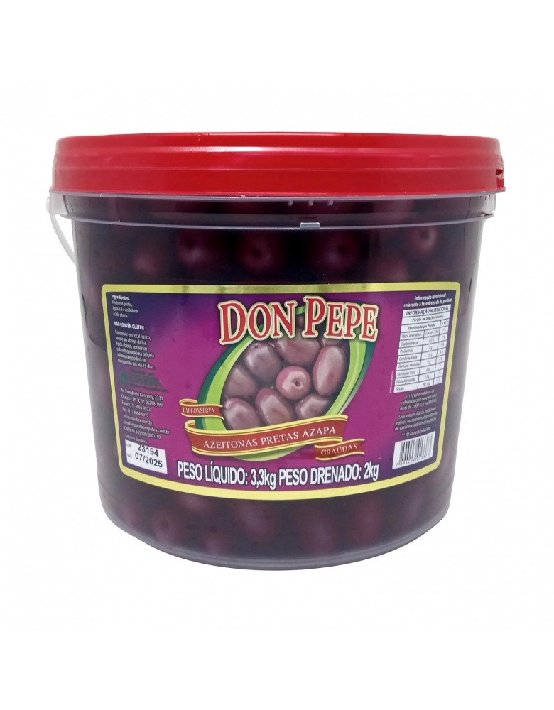 CONSERVAS, ENLATADOS E ATOMATADOS>AZEITONA PRETA>AZEITONA PRETA>AZEITONA AZAPA 16/20 DON PEPE BD 2KG
