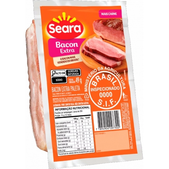 PRESUNTO CRU E EMBUTIDOS>BACON E DEFUMADOS>BACON>BACON MEIA MANTA SEARA 2,8KG
