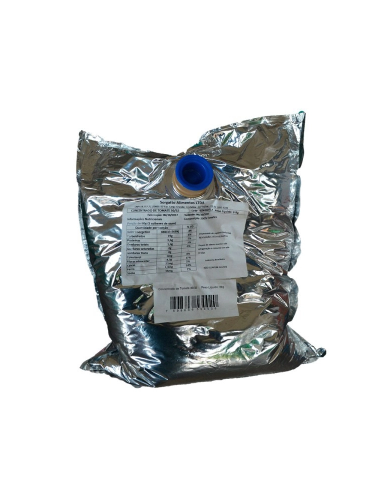 CONSERVAS, ENLATADOS E ATOMATADOS>POLPA DE TOMATE>POLPA DE TOMATE>POLPA DE TOMATE CONCENTRADO 30/32 BRIX SORGATTO BAG 6KG