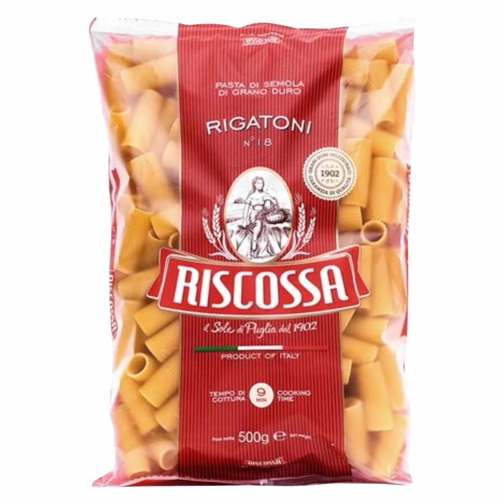 MASSAS>MASSA CURTA>RIGATONI>RIGATONI GRANO DURO RISCOSSA 500G
