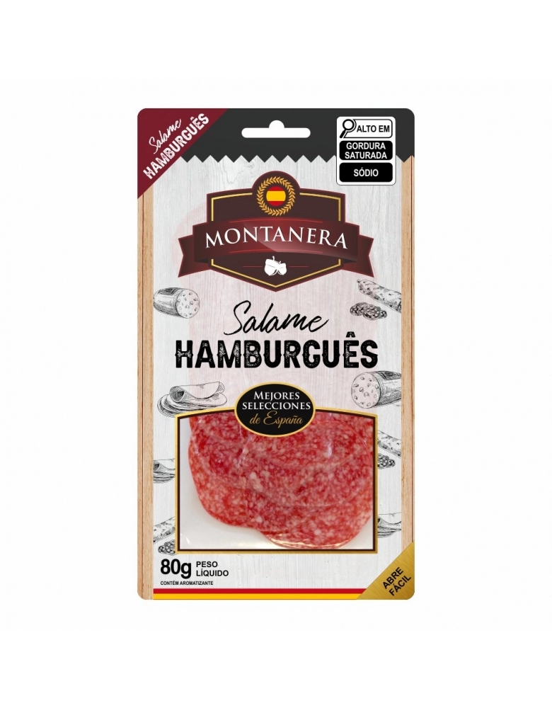 PRESUNTO CRU E EMBUTIDOS>EMBUTIDOS>SALAME HAMBURGUES>SALAME TIPO HAMBURGUES FATIADO MONTANERA 80G